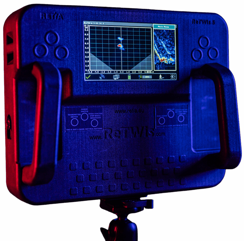 The ReTWIS 5+ (RETIA Through-Wall Imaging System) is a unique small portable radar detecting living entities behind a wall or a non-metallic barrier. Thanks to its technology, the radar can detect living entities both in motion and at rest.
